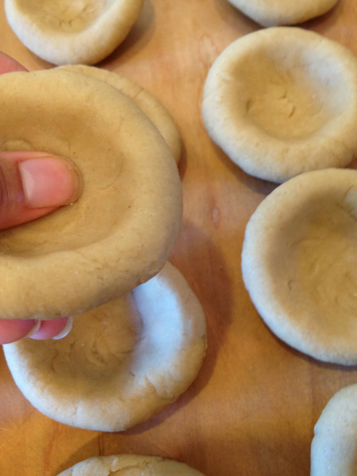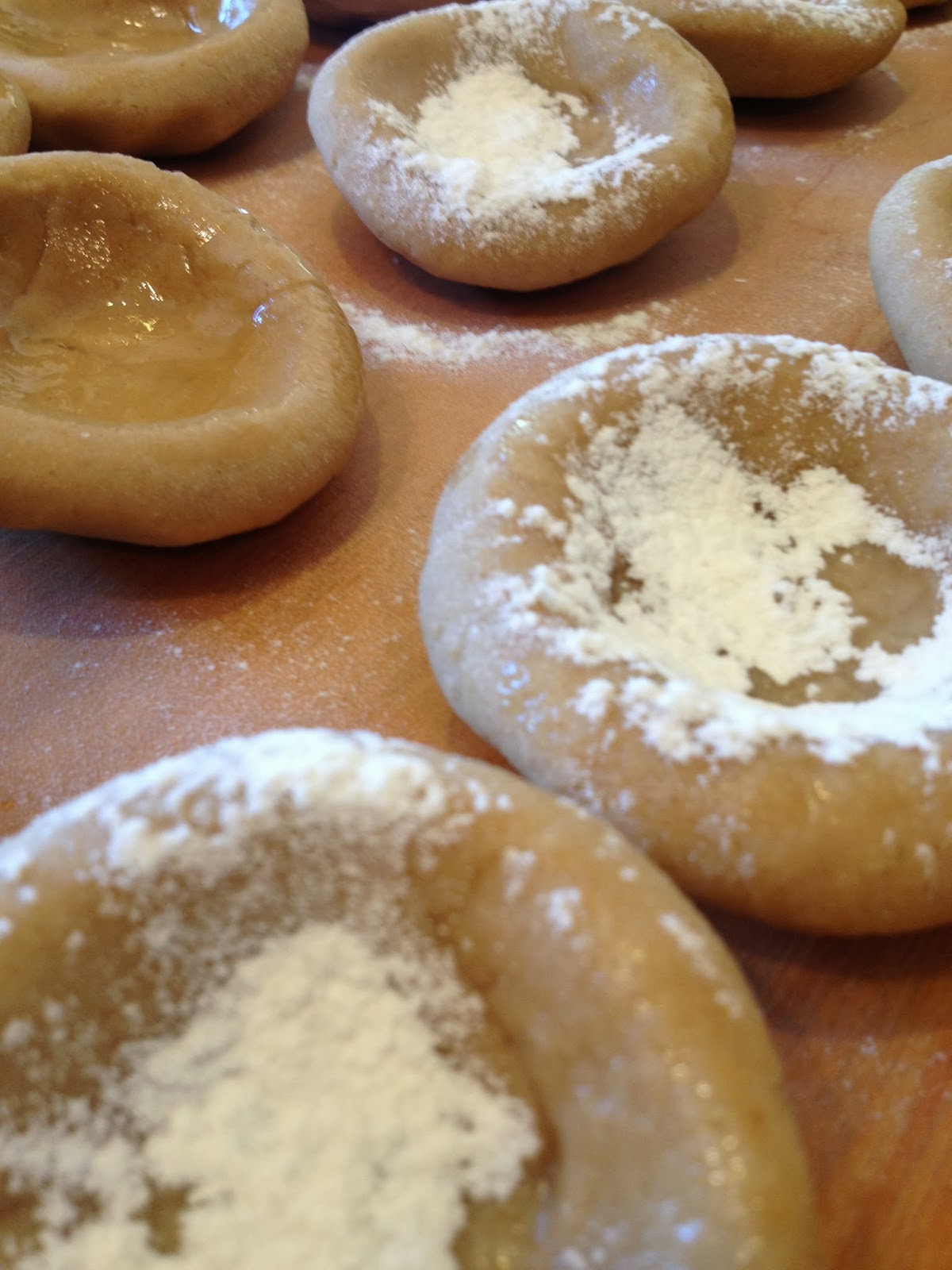 Make a bowl shape out of each piece of dough and place on a floured board.