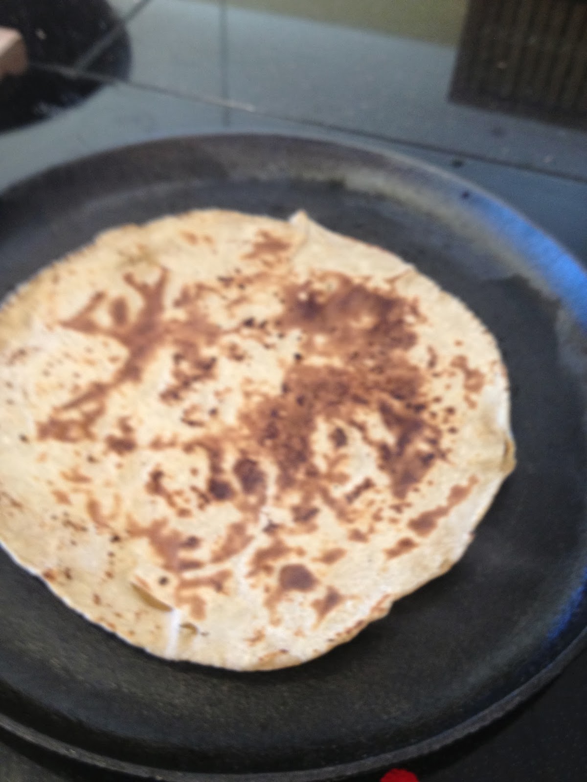 Turn over your roti and you will see larger areas of brown, speckled with tiny dots of black and brown.